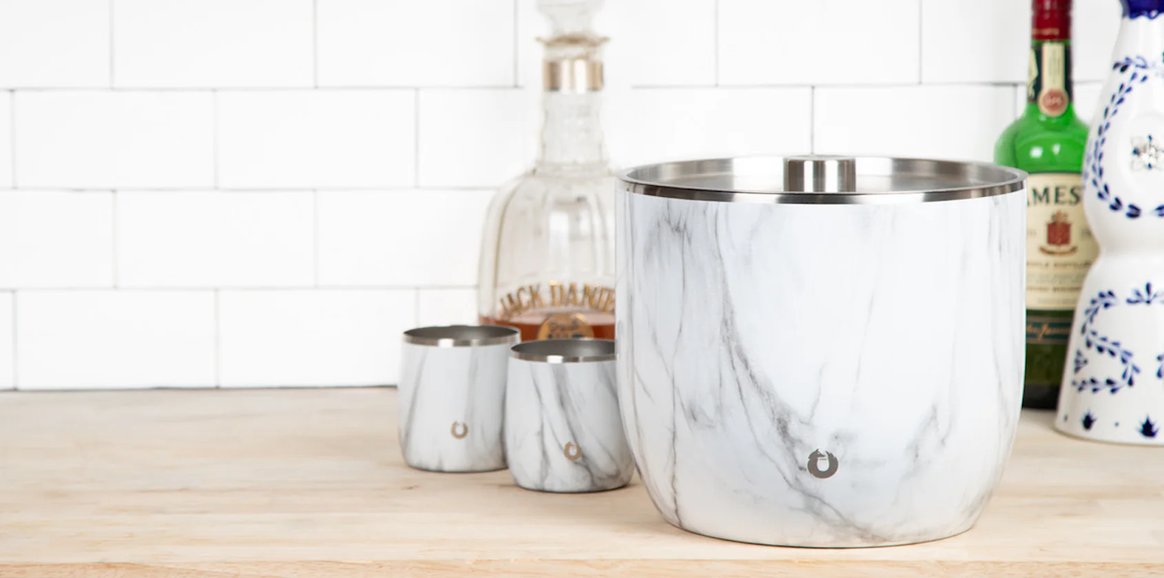 Stainless Steel Ice Bucket with Rocks Glass Set, Marble